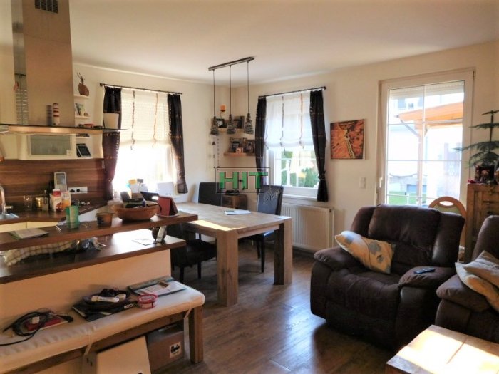 Teil unterkellert. Sehr gepflegter Garten mit sonniger Terrasse und Pavillion. Internet, Kabelfernseher, Fliegengitter, Außenrollo, Jalousinen, Kunststofffenster, Beregnungsanlage.